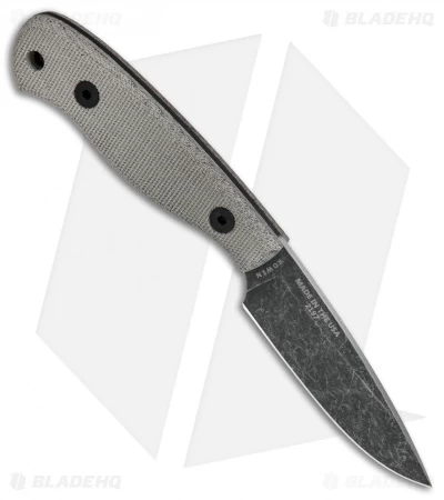 This James Gibson designed JG3 has a stonewashed black oxide finished 1095 steel blade with a flat grind paired with a tan Micarta handle. It is supplied with an upgraded leather pouch sheath. The Camp-Lore series of knives from ESEE are designed by some of the most experienced woodsmen in the world and made in Idaho, USA.