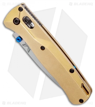This Benchmade Bugout knife has been outfitted with brass scales from Flytanium. The folks at Flytanium have a passion for customizing fine cutlery, and recently set their sights on Benchmade’s latest EDC essential, the Bugout. Like the original, the scales are drilled for right hand, tip up carry. This model has scales that are milled to high tolerances for exceptional fit and finish.