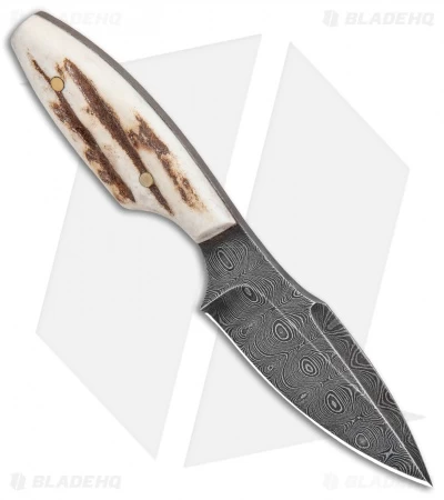 Olamic Cutlery Harpoon Slim Neck Knife Stag (3″ Damascus)