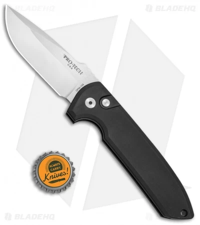 This Les George designed Protech Rockeye model has a satin finished blade and a smooth black aluminum handle.